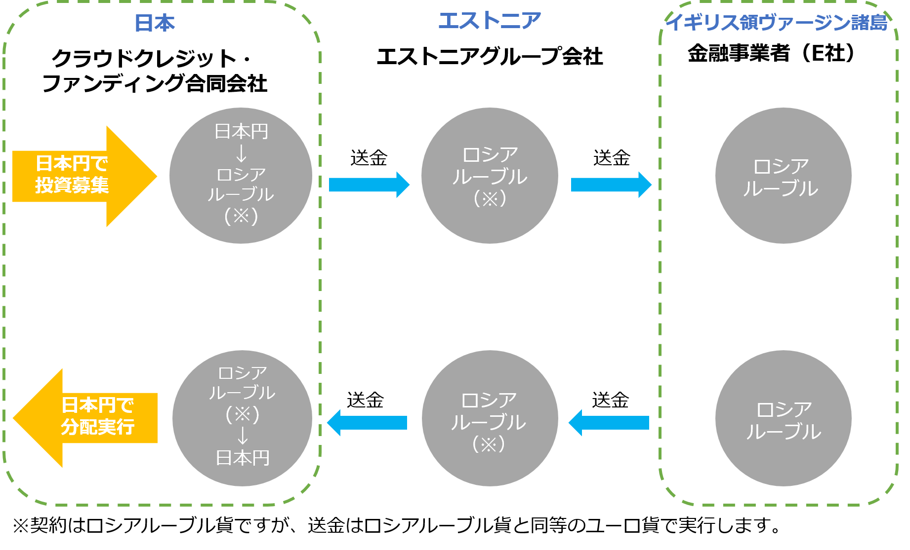 ※当社エストニアグループ会社が金融事業者Eに対してロシアルーブル建てで貸付するにあたり外国為替手数料等が発生します。