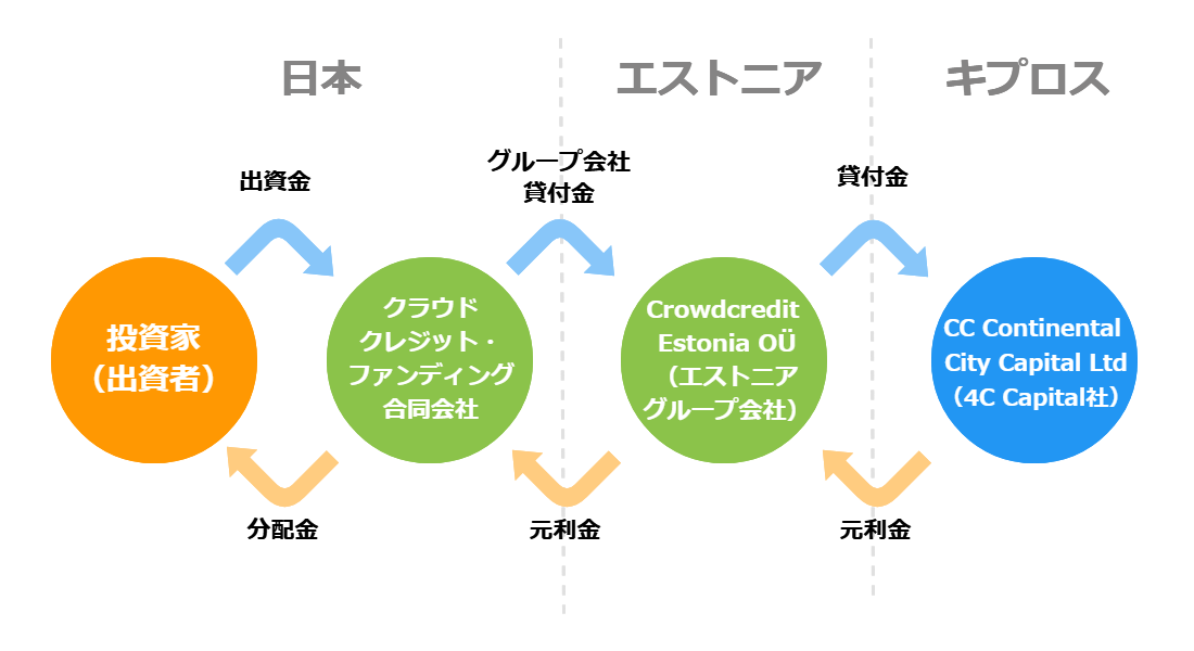 その上でエストニアグループ会社はこの借入金を原資として、キプロスを拠点に事業を展開する金融事業者であるCC Continental City Capital Ltd(以下「4C Capital社」といいます)へ貸付けを行います。