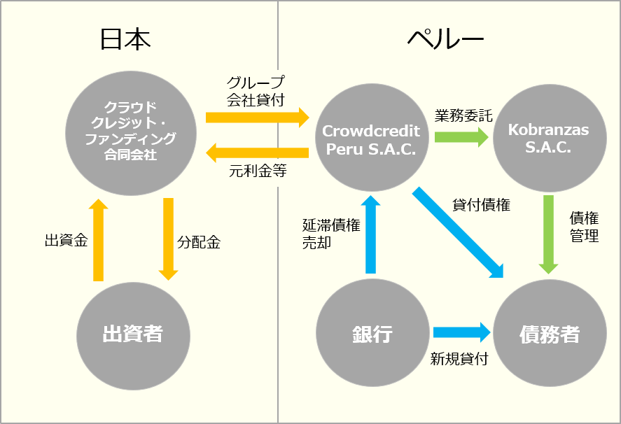 お客様には、クラウドクレジット・ファンディング合同会社(以下、合同会社)のペルーグループ会社貸付事業に対して出資いただきます。
