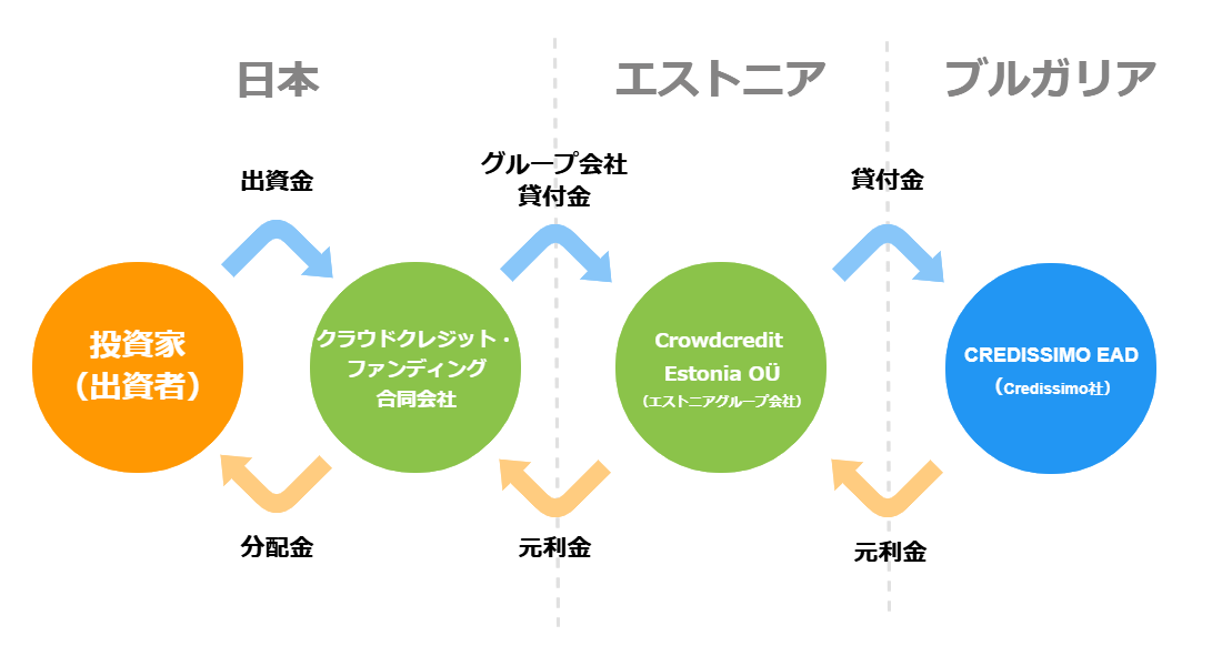 その上でエストニアグループ会社はこの借入金を原資として、ブルガリア共和国を拠点に事業を展開する金融事業者であるCREDISSIMO EAD(以下「Credissimo社」といいます)へ貸付けを行います。