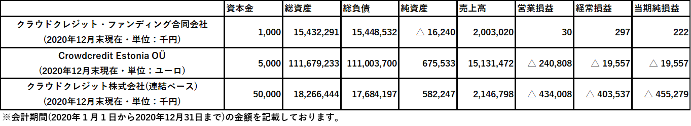 1.当社はクラウドクレジット・ファンディングとエストニアグループ会社の議決権を100%保有しております。