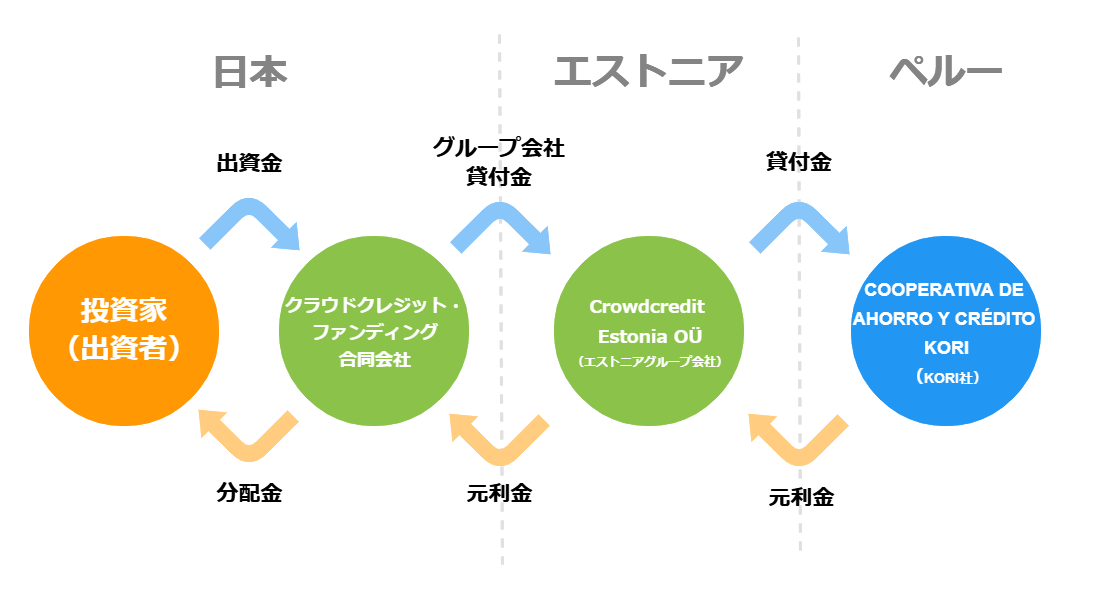 その上でエストニアグループ会社はこの借入金を原資として、ペルーを拠点に事業を展開する貯蓄信用協同組合であるCOOPERATIVA DE AHORRO Y CRÉDITO KORI(以下「KORI社」といいます)へ貸付けを行います。