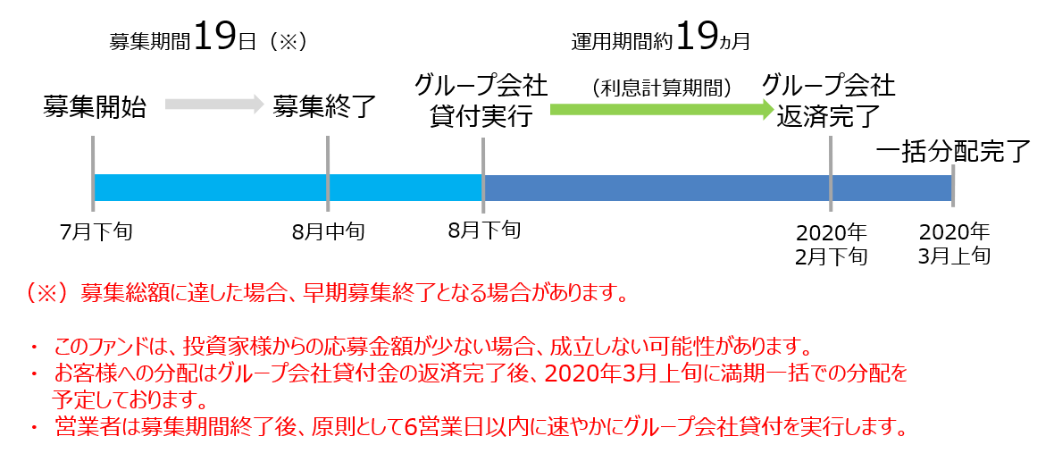 本ファンドはA社グループへの貸付金利が低下していく可能性がある中、約19か月に運用期間を延ばすことで好金利でなるべく長く運用できるよう組成されております。
