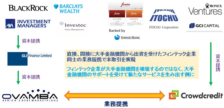 Ovamba社はMackinsey & Co. 出身でOvamba創設者でありCEOでもあるMarvin Coleを筆頭に、金融業界やコンサルティングファームでの経験を積んだメンバーで運営されているFintech(フィンテック)企業のひとつです。また、Ovamba社は、BlackRock、Barclays Wealth、AXA Investment Management、Investecといった大手のアセットマネジメント会社より出資を受けているGLI Finance Limitedより取引の仕組みについてアドバイスを受けており、当ファンドは大手金融機関から出資を受けたフィンテック企業同士の提携案件です。