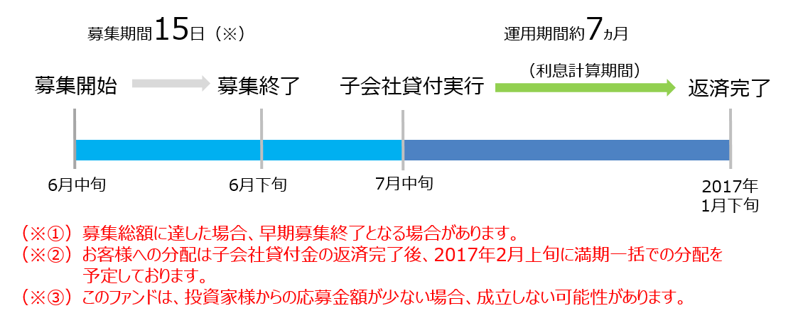 当社は募集期間終了後、原則として10 営業日目に速やかに子会社貸付の実行を行います。